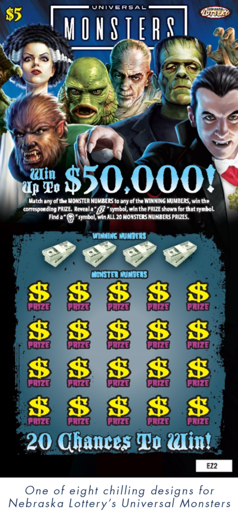 “The Nebraska Lottery is constantly looking for entertaining new games and Universal Monsters represented an excellent opportunity to introduce some seasonal fun into the portfolio,” said Brian Rockey, Director, Nebraska Lottery. “Today’s launch is a truly original scratch experience we believe our players are sure to enjoy.”