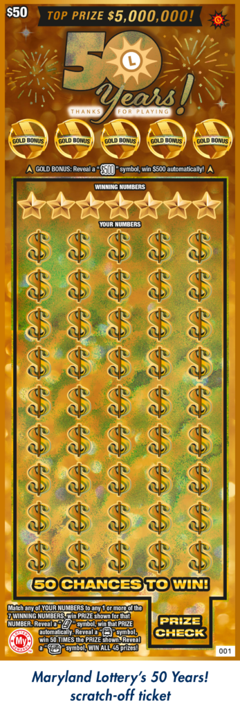 The commemorative game is also part of the Lottery’s 50th Anniversary Cash Bash second-chance promotion, which offers player loyalty program members one entry for every $50 worth of eligible tickets entered into their accounts. Five drawings will be held over the next several months to award 100 cash prizes, and the promotion culminates in September with a celebratory event at the Maryland State Fair, where one second-chance finalist could win up to $5 million.
