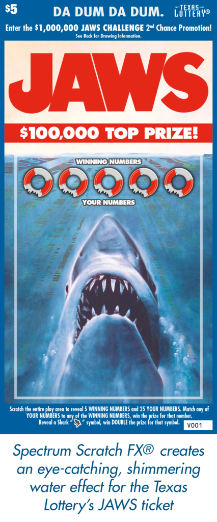 WINNIPEG, Manitoba, June 3, 2025 /CNW/ – Pollard Banknote Limited (“Pollard Banknote”; TSX: PBL) congratulates the Texas Lottery (“the Lottery”) on the launch of its Jaws–inspired $5 scratch ticket program. The stunning ticket art features the film’s iconic poster image which is enhanced with Pollard Banknote’s Spectrum Scratch FX® print innovation. With a top prize of $100,000 up for grabs, the scratch ticket also boasts an exciting second-chance opportunity for Texas Lottery® players. Pollard Banknote has teamed up with Atlas Experiences, LLC (“Atlas”) to offer Texas Lottery players a chance to win a trip to Austin, Texas, where they will participate in the $1,000,000 Jaws Challenge at an Alamo Drafthouse for a chance to swim away with $1,000,000.